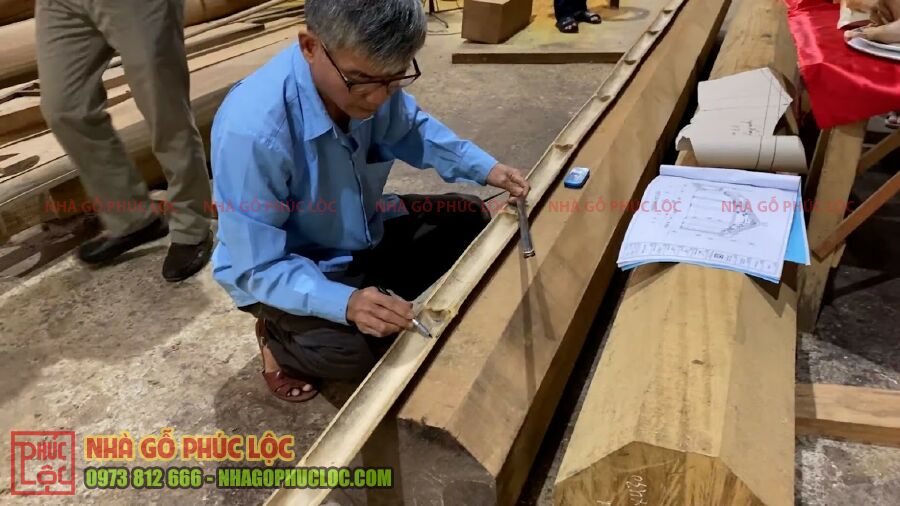 - Các cấu kiện sau khi đã được xẻ thành khí về xưởng, thì phải qua một bước kiểm tra và thẩm định của bác thợ cả. Sau đó mới được đi vào thi công sản xuất tại xưởng để làm nên căn nhà gỗ cổ truyền.