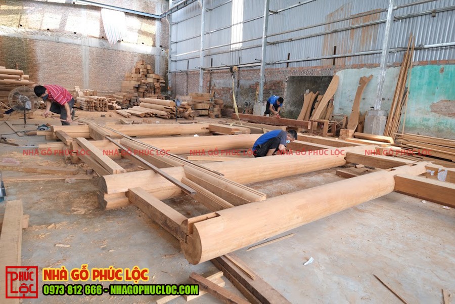 Toàn bộ cấu kiện làm nhà gỗ cổ truyền sẽ được diễn ra tại các xưởng mộc.