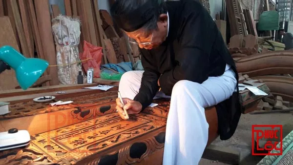 Viết chữ nho theo cổ truyền việt nam trên nóc nhà và câu đầu có...